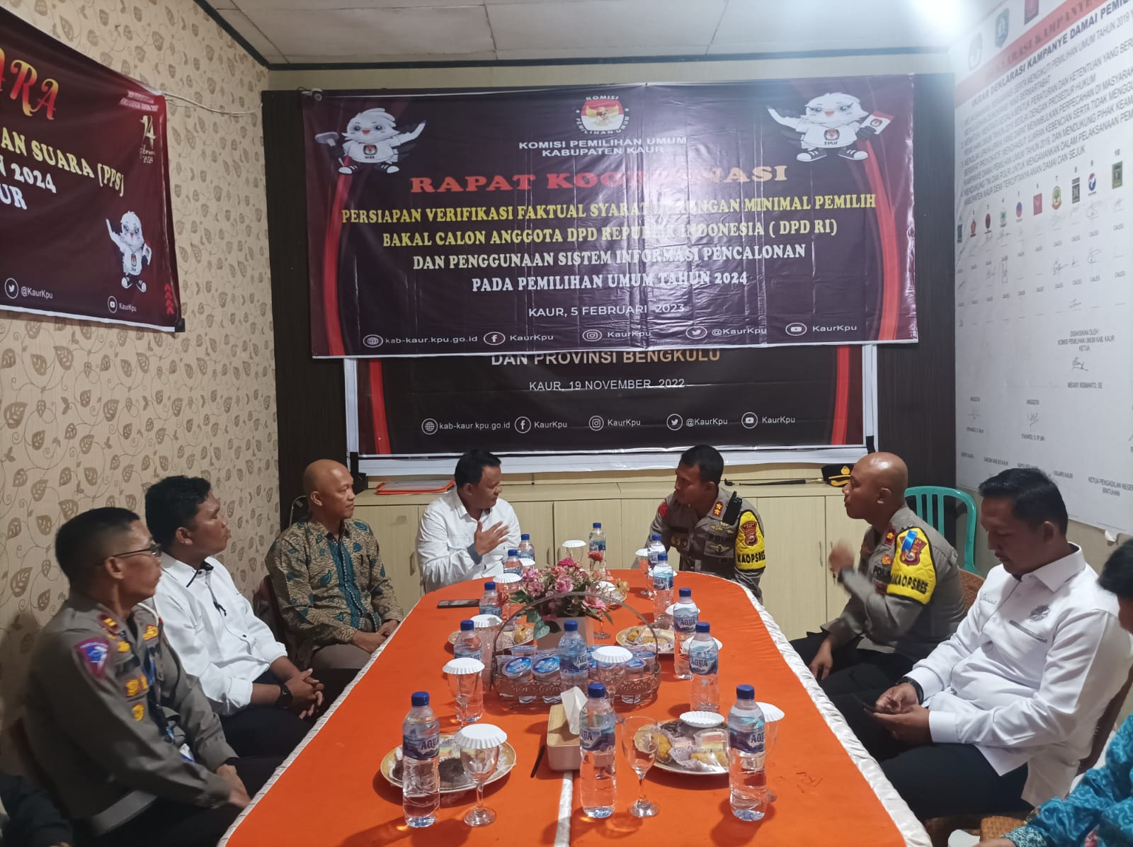 Kapolres Kaur menyarankan agar pihak KPU selalu berkoordinasi dengan pihak Bawaslu demi kelancaran dan kesuksesan pemilu tahun 2024, pihak Polres siap membantu dan menjalin sinergitas dalam pelaksanaan Pemilu Tahun 2024.