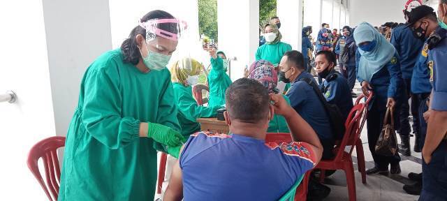 BENGKULU – Pemerintah Kota (Pemkot) Bengkulu melalui Dinas Kesehatan (Dinkes) Kota Bengkulu kembali melakukan penyuntikan vaksinasi Covid-19 tahap II. Sasarannya kali ini kepada personil Satpol-PP, Tagana dan pemadam kebakaran kota Bengkulu, bertempat di Alun-alun Berendo Masjid At-Taqwa kota Bengkulu, Selasa (16/3/2021).