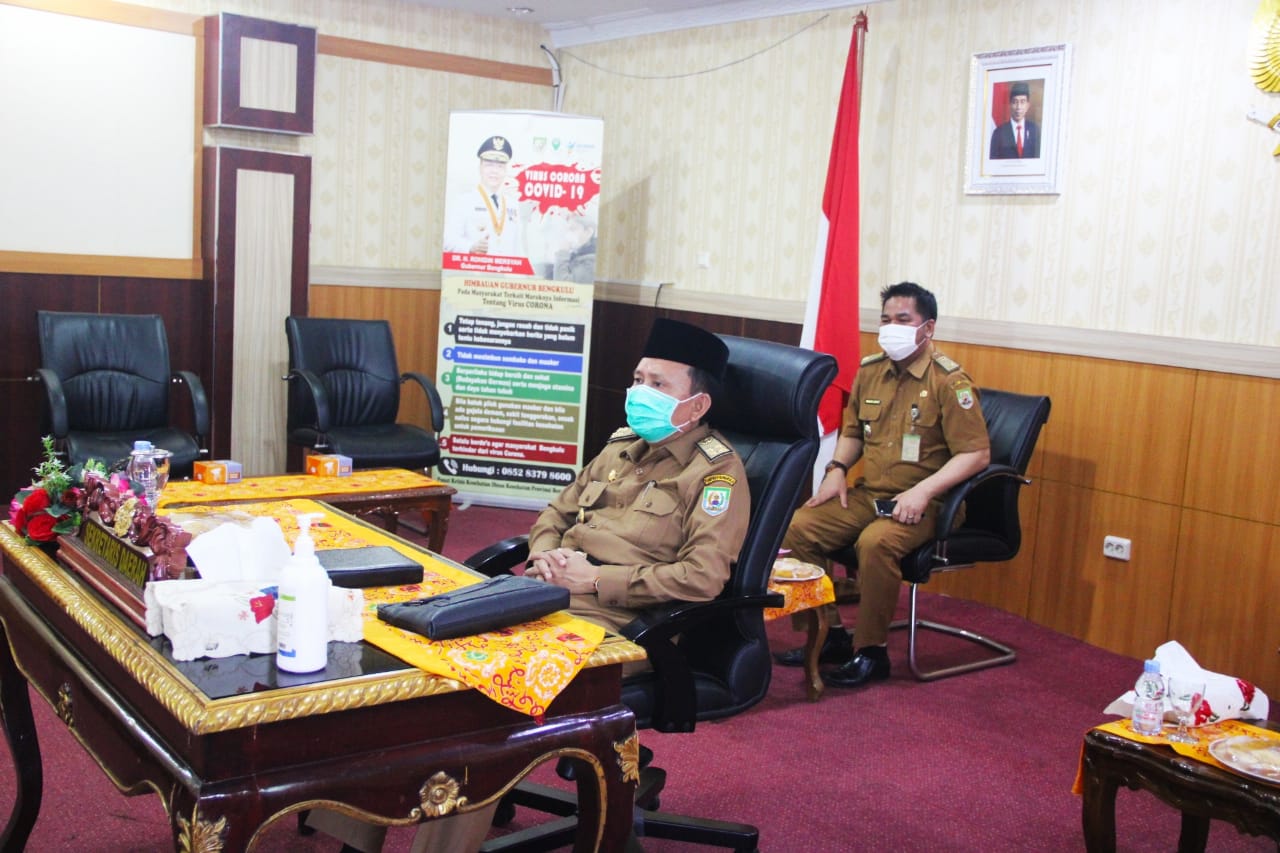 Bengkulu, Siberindo.co – Sekretaris Daerah (Sekda) Provinsi Bengkulu Hamka Sabri ikuti Rapat Monitoring dan Evaluasi Pengelolaan Barang Milik Daerah terkait Optimalisasi Pengelolaan Anjungan Milik Pemda yang berada di Taman Mini Indonesia Indah (TMII) via Virtual Meeting, di Ruang VIP Pola Provinsi Bengkulu, Senin (15/03/2021).