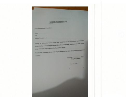 “Dengan ini menyatakan setelah menerima insentif Covid-19 saya akan bersedia mengembalikan kelebihan bayar apabila dikemudian hari terdapat kekeliruan atau tidak sesuai dengan ketentuan yang berlaku ke kas negara/kas daerah”.