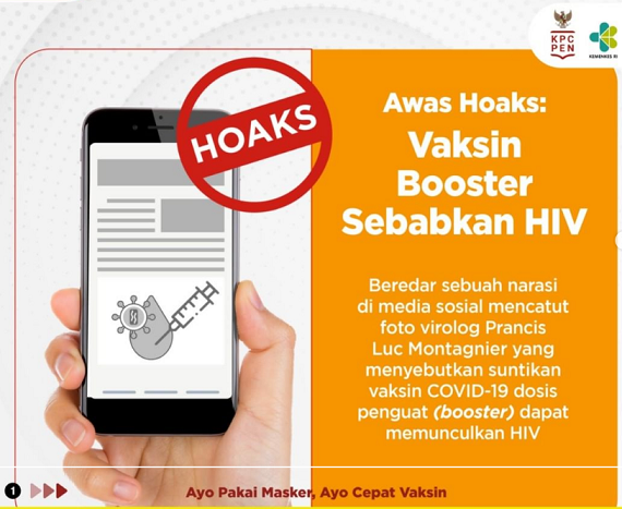 Dikutip dari lawancovid19_id, Faktanya informasi tersebut tidak benar. Dokter dan peneliti yang berbasis di Cardiff Inggris dan fokus menangani vaksin COVID-19, Bnar Talabani mengatakan narasi soal vaksin booster penyebab HIV, tidak benar.