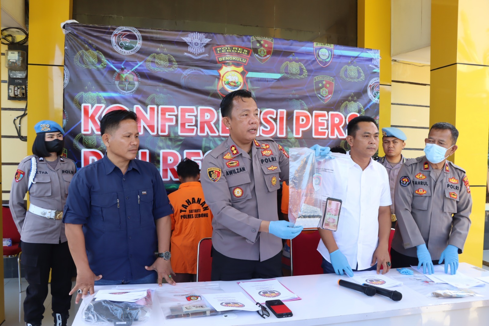 “ES kita jerat dengan Pasal 197 UU Kesehatan menyatakan bahwa: “Setiap orang yang dengan sengaja memproduksi atau mengedarkan sediaan farmasi dan/atau alat kesehatan yang tidak memiliki izin edar sebagaimana dimaksud dalam Pasal 106 ayat (1),” terang Kapolres Lebong AKBP Awilzan saat press release di Mapolres Lebong, Rabu (15/3/2023).
