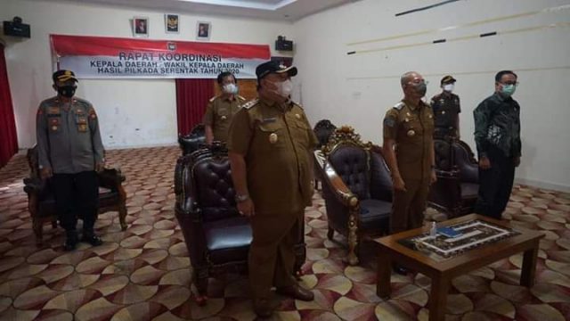 Bengkulu, Siberindo.co – Bupati Bengkulu Selatan, Gusnan Mulyadi dan Wakil Bupati Rifa’i Tajuddin mendengarkan arahan Presiden Jokowi pada Rapat koordinasi (Rakor) Kepala Daerah dan Wakil Kepala Daerah Hasil Pilkada Serentak Tahun 2020 secara daring, Rabu (14/4/2021).