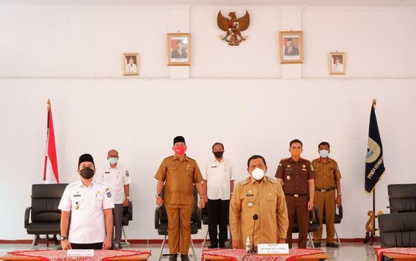 Bengkulu, Siberindo.co – Bupati Bengkulu Utara Ir H Mian bersama Wakil Bupati Bengkulu Utara Arie Septia Adinata, SE,M.Ap dan Forkopimda mendengarkan arahan presiden dalam Rapat Koordinasi Pengarahan Presiden Republik Indonesia (RI) kepada Kepala Daerah terpilih hasil Pilkada Serentak Tahun 2020, secara virtual di Ruang Pola Setdakab BU, Rabu (14/4/2021).