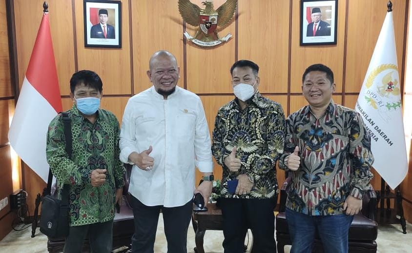 Saat menerima tamu audensi LaNyalla Mattalitti Ketua DPD RI didamping Hi. Bustami Zainudin, S.Pd, MH Anggota DPD RI dari Lampung, Alexander Fransiscus Anggota DPD RI dari Babel dan Ir. H. Darmansyah Husein yang juga Mantan Bupati Belitung dua periode. Tampak juga hadir staf khusus LaNyata Mattalitti, Bapak Jamal dan Tenaga Ahli Andi Baso.