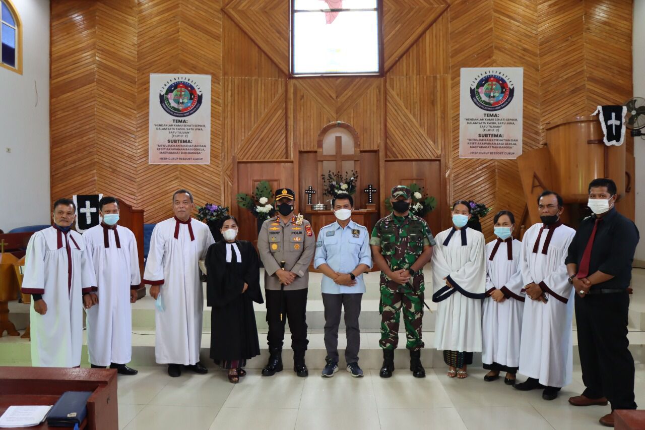 Bengkulu, Siberindo.co – Kapolres Rejang Lebong AKBP Tonny Kurniawan, S.I.K bersama Ketua DPRD Mahdi Husen, SH dan Dandim 0409 Rejang Lebong Letkol Czi Trisnu Novawan, S.Sos, M.Tr(Han)., M.Si meninjau aktifitas Ibadah Jum’at Agung Umat Nasrani di Gereja HKBP Sukowati Curup. Jum’at (15/04/22)