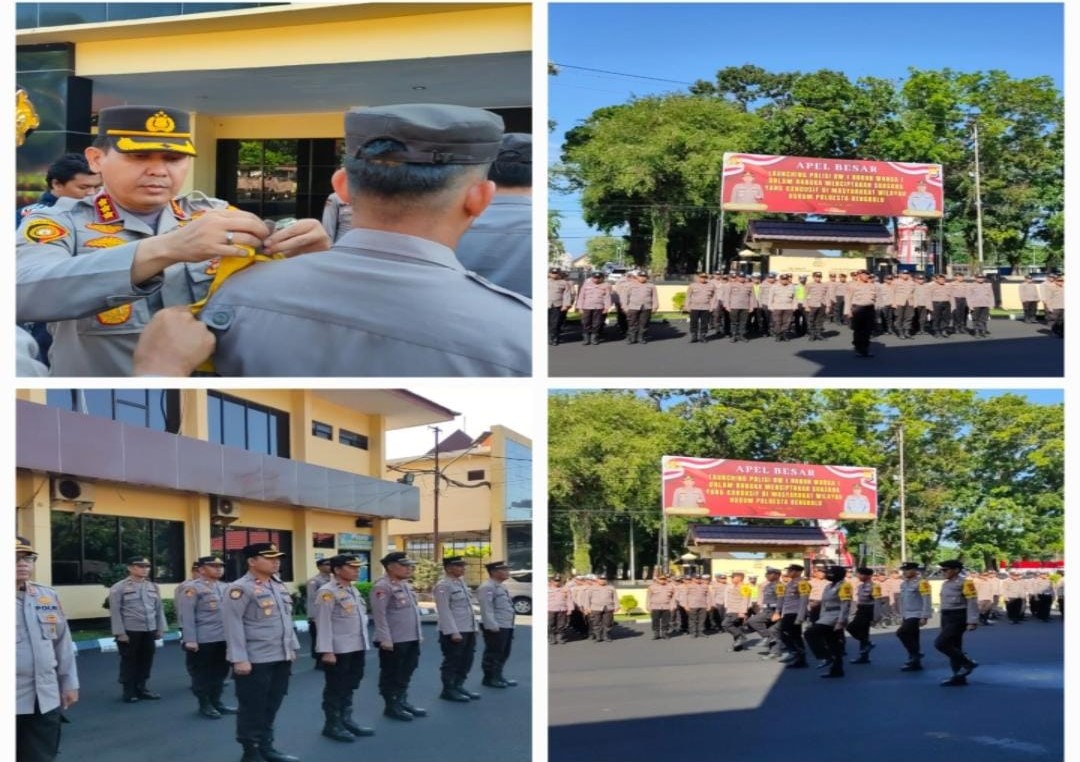 Hadir dalam kegiata ini Waka Polresta Bengkulu AKBP Max Mariners, S.I.K., M.H, para PJU dan Kapolsek Jajaran Polresta Bengkulu diikuti personel yang tersprint Polisi RW ± 322 Orang.