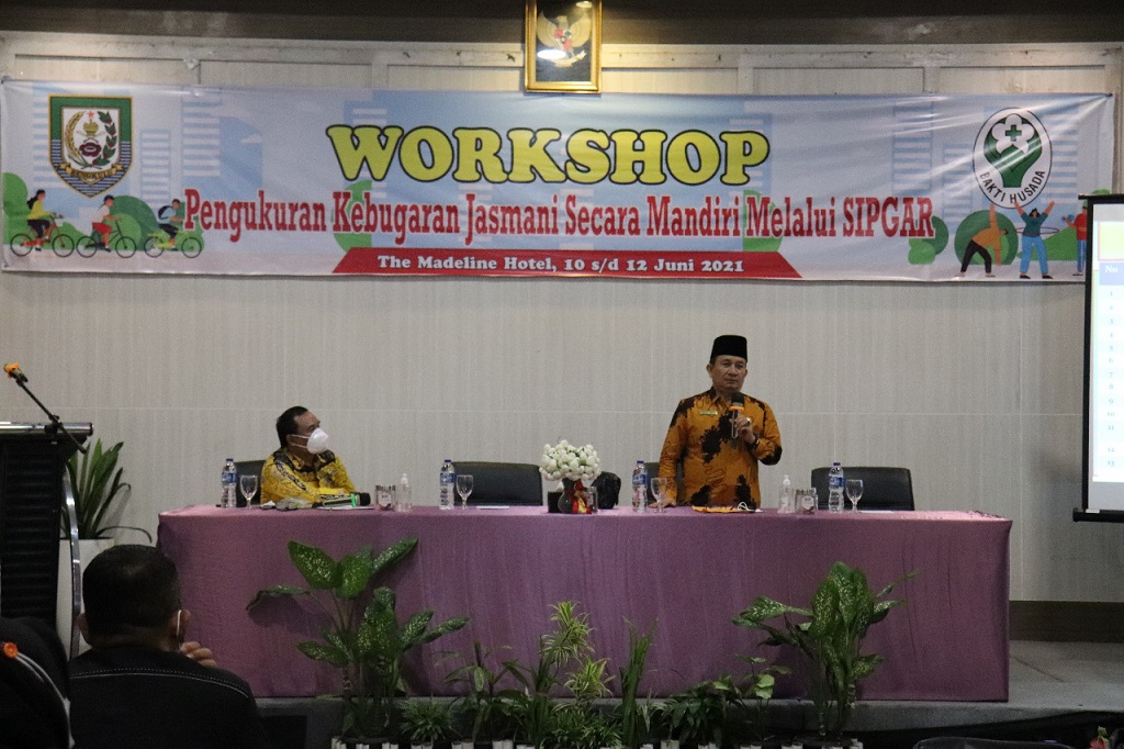 Bengkulu, Siberindo.co – Kepala Kantor Wilayah Kementerian Agama (Kakanwil Kemenag) Provinsi Bengkulu Drs. H Zahdi Taher, M.HI hadir dalam kegiatan workshop yang diadakan Dinas Kesehatan (Dinkes) Provinsi Bengkulu di Hotel Madelin, Jumat (11/6/2021). Kegiatan yang bertemakan “Pengukuran Kebuagaran Jasmani Secara Mandiri Melalui SIPGAR” ini mengundang Kakanwil Kemenag Provinsi Bengkulu untuk menjadi narasumber terkait pelaksanaan haji di Provinsi Bengkulu tahun 2021.