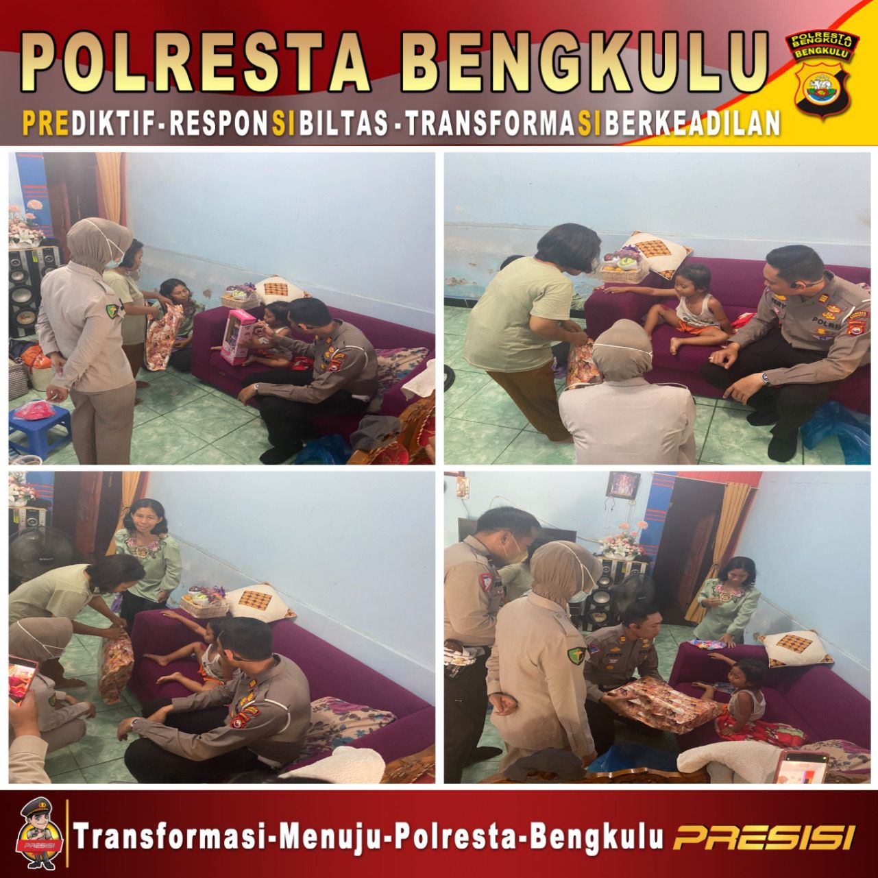 Kegiatan kunjungan berjalan aman dan lancar, serta keluarga korban berterimakasih atas kepedulian dari kepolisian Polresta Bengkulu telah berkunjung serta memberikan pengobatan.
