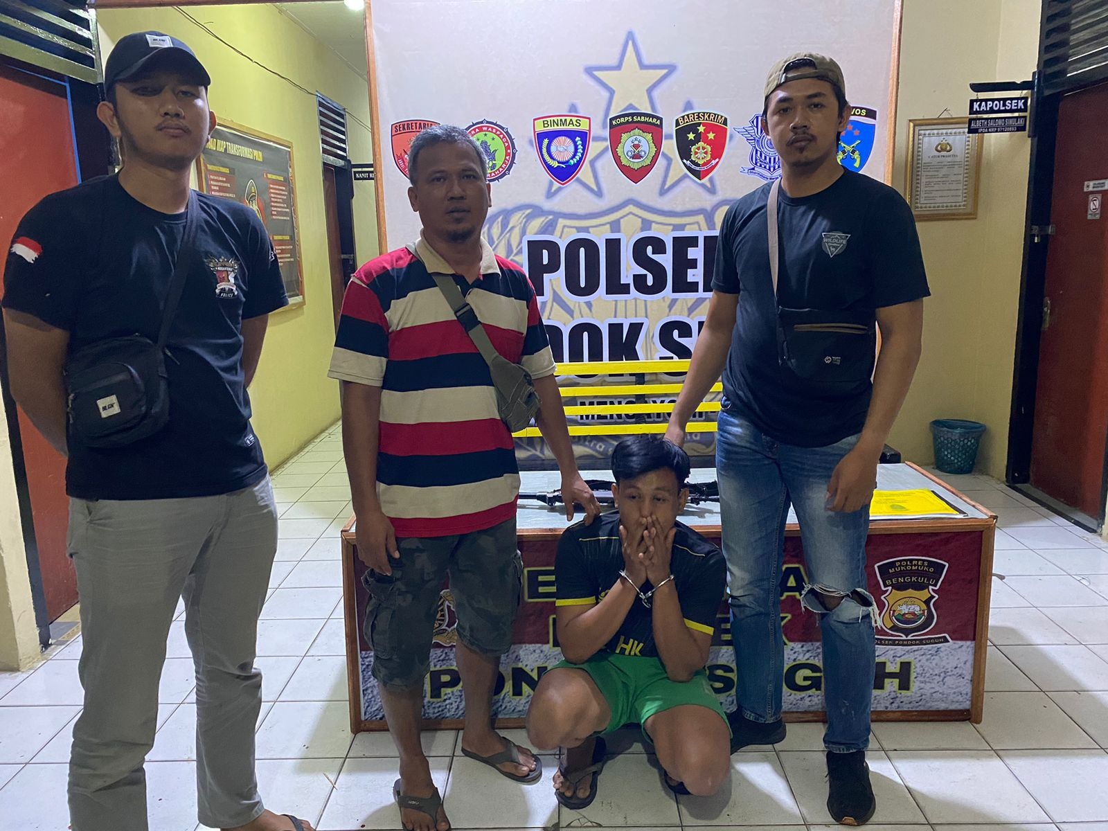 Saat ditangkap pelaku tidak melakukan perlawanan dan selanjutnya pelaku dibawa ke Polsek Pondok Suguh untuk dimintai keterangan.