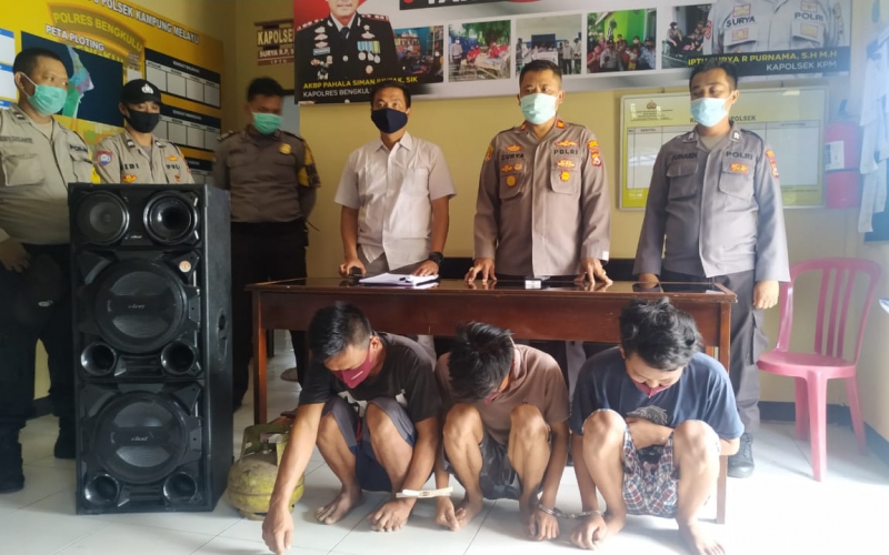Tim Opsnal Polsek Kampung Melayu meringkus tiga orang pelaku pencurian masing-masing berinisial HE (30), EK (25) dan AN (19) ketiganya warga Kelurahan Bumi Ayu dan Kelurahan Kandang, Senin (14/12/2020) dinihari.