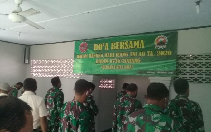 Komandan Kodim 0736/Batang Letkol Arh Yan Eka Putra menggelar doa bersama dalam rangka Hari Juang TNI – AD Tahun 2020, di Musholla Kodim Batang (15/12/2020).