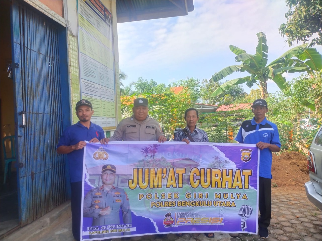 Bengkulu Utara – Polsek Giri Mulya Polres Bengkulu Utara Polda Bengkulu, kembali menyelenggarakan kegiatan “Jumat Curhat” di Desa Giri Mulya. Acara ini merupakan bagian dari upaya Polsek Giri Mulya untuk melakukan cooling System menjelang pemilu 2024 serta mendengarkan keluhan dan memberi pesan Kamtibmas kepada masyarakat. Jumat (15/12/2023).