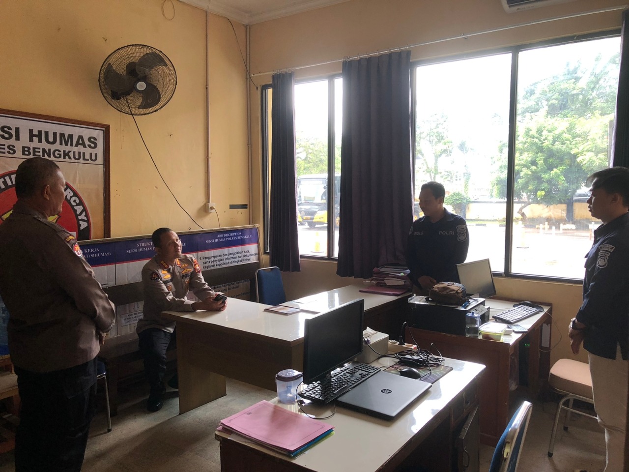 Kedatangan Kabid Humas Polda Bengkulu di Polresta Bengkulu disambut Kasi Humas Polresta Bengkulu dan anggota.