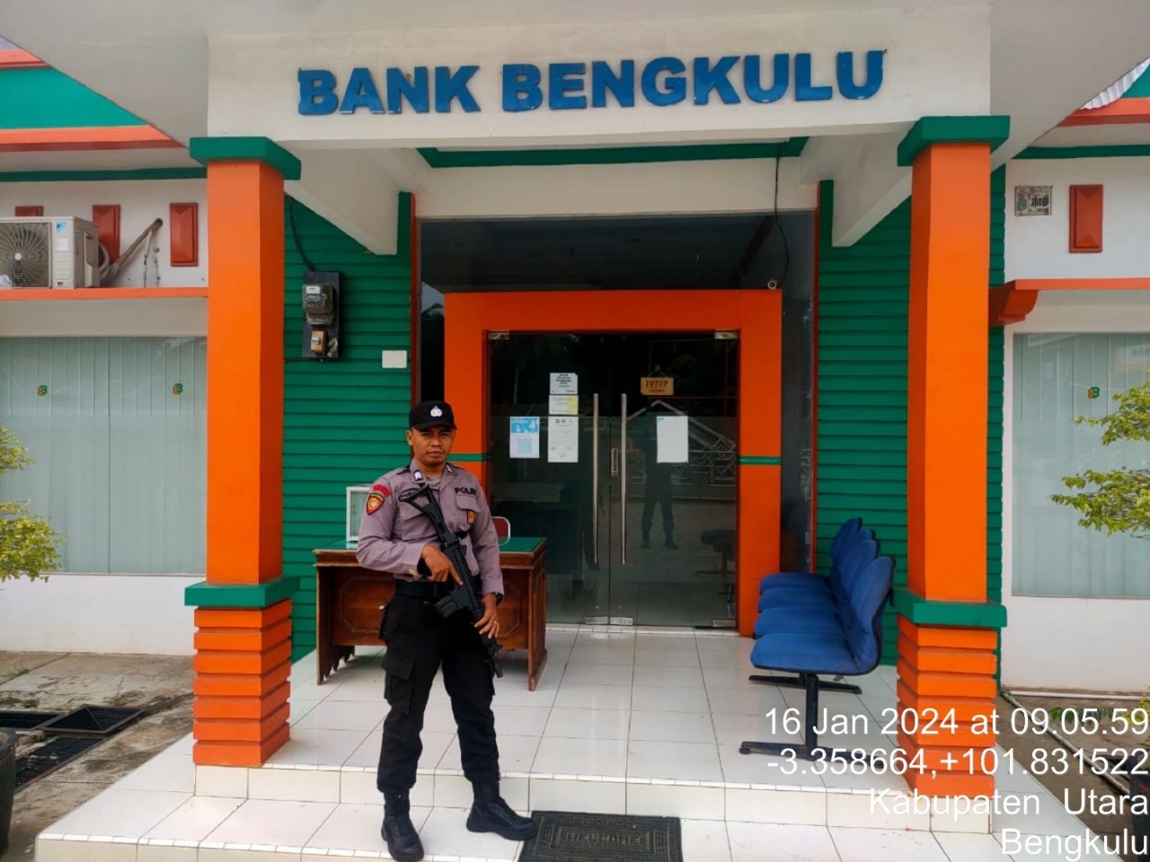Bengkulu Utara — Anggota Polsek Ketahun Polres Bengkulu Utara Polda Bengkulu, melaksanakan pengamanan obyek vital di Kantor Bank BPD Capem Ketahun Selasa (16/01/2024).