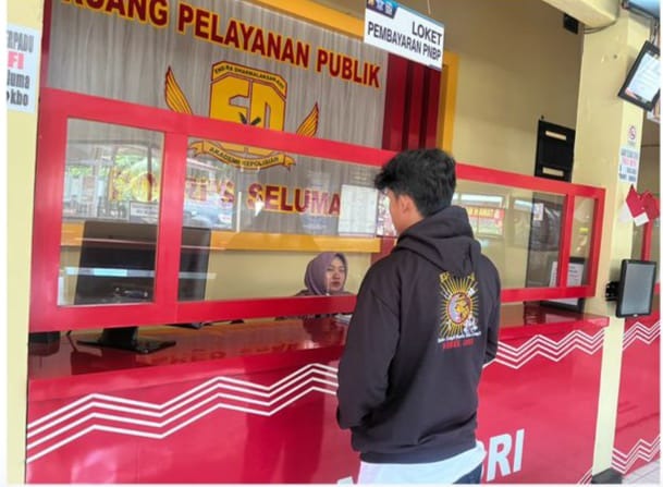 Pembayaran langsung pada loket Bank BRI yang telah tersedia di ruang pelayanan publik Polres Seluma oleh pemohon SKCK.