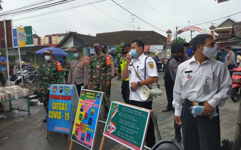 Koramil 08/Baki melaksanakan kegiatan himbauan protkol kesehatan 5M (Memakai Masker, Mencuci Tangan, Menjaga Jarak, Menghindari Kerumunan dan Mengurangi Mobilitas) kepada warga dalam rangka peningkatan disiplin Prokes, pencegahan dan pengendalian Covid-19, Selasa (16/02)