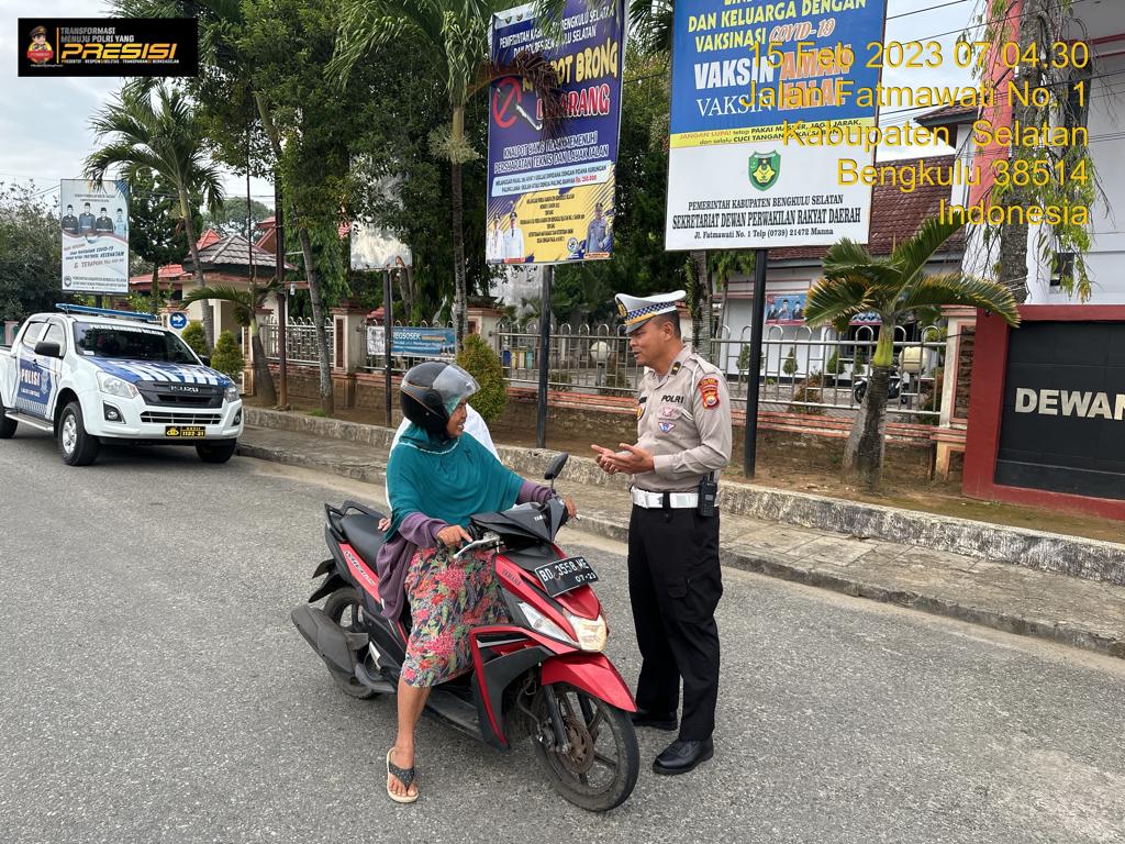 Bengkulu Selatan, Bengkulusiberindo.co – Sambil mensosialisasikan Pemberlakuan Electronic Traffic Law Enforcement (ETLE), Ipda Sudarminta saat berikan teguran humanis dalam rangka Ops Keselamatan Nala-Tahun 2023