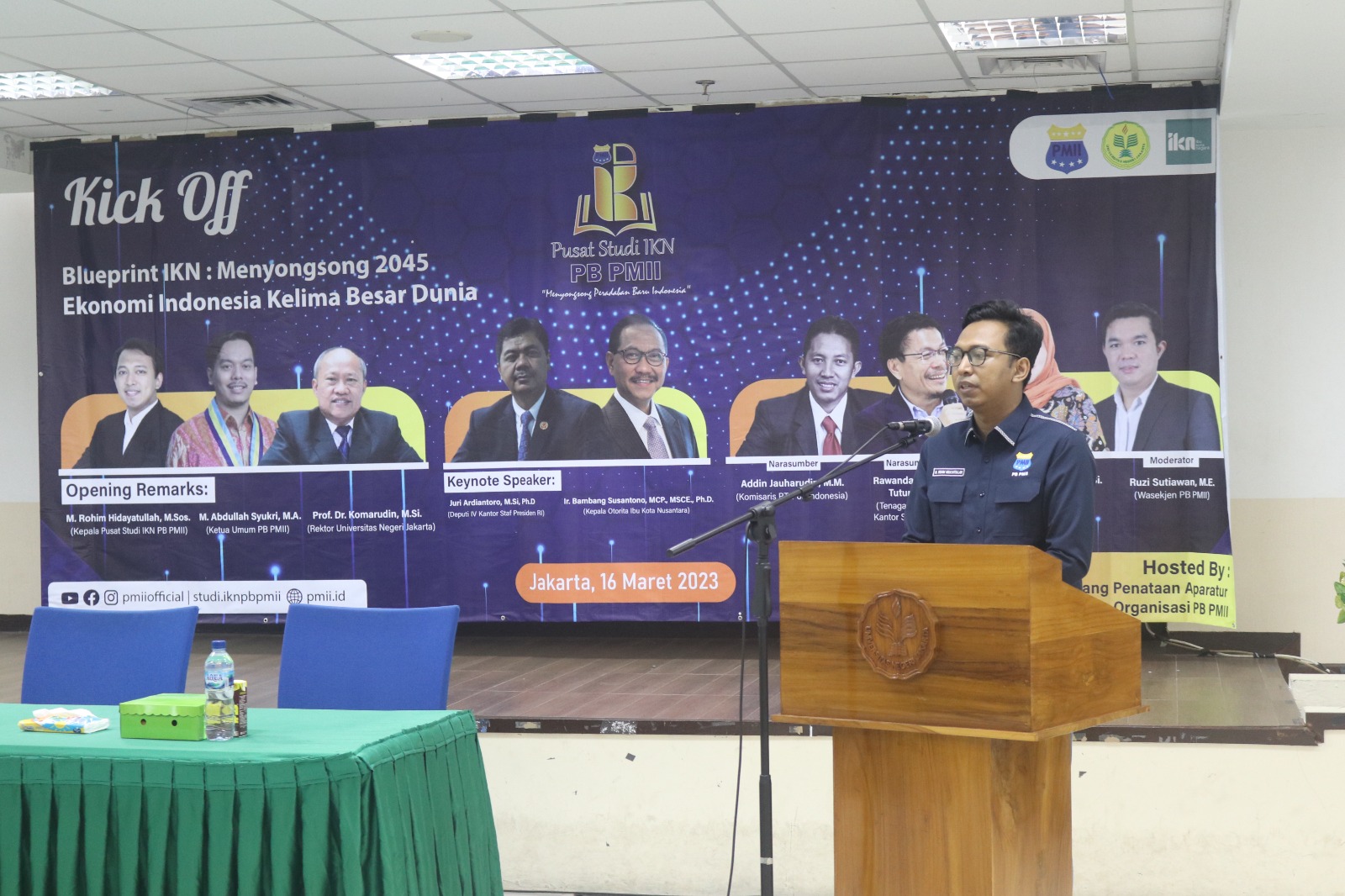 Untuk merespon hal tersebut, Pusat Studi IKN PB PMII memulai “Kick Off” sebagai wadah kajian kritis sekaligus kontributor intelektual kader PMII untuk meninjau seputar isu pemindahan Ibu Kota Negara dengan berbagai pendekatan disiplin ilmu pengetahuan seperti lingkungan, climate change, budaya, ekonomi, development, geopolitik, dan lain-lain. Dalam kesempatan ini, Pusat Studi IKN PB PMII memulai diskusi dengan tema “Blueprint IKN: Menyongsong 2045 Ekonomi Indonesia Kelima Dunia” yang kami selenggarakan di Universitas Negeri Jakarta.