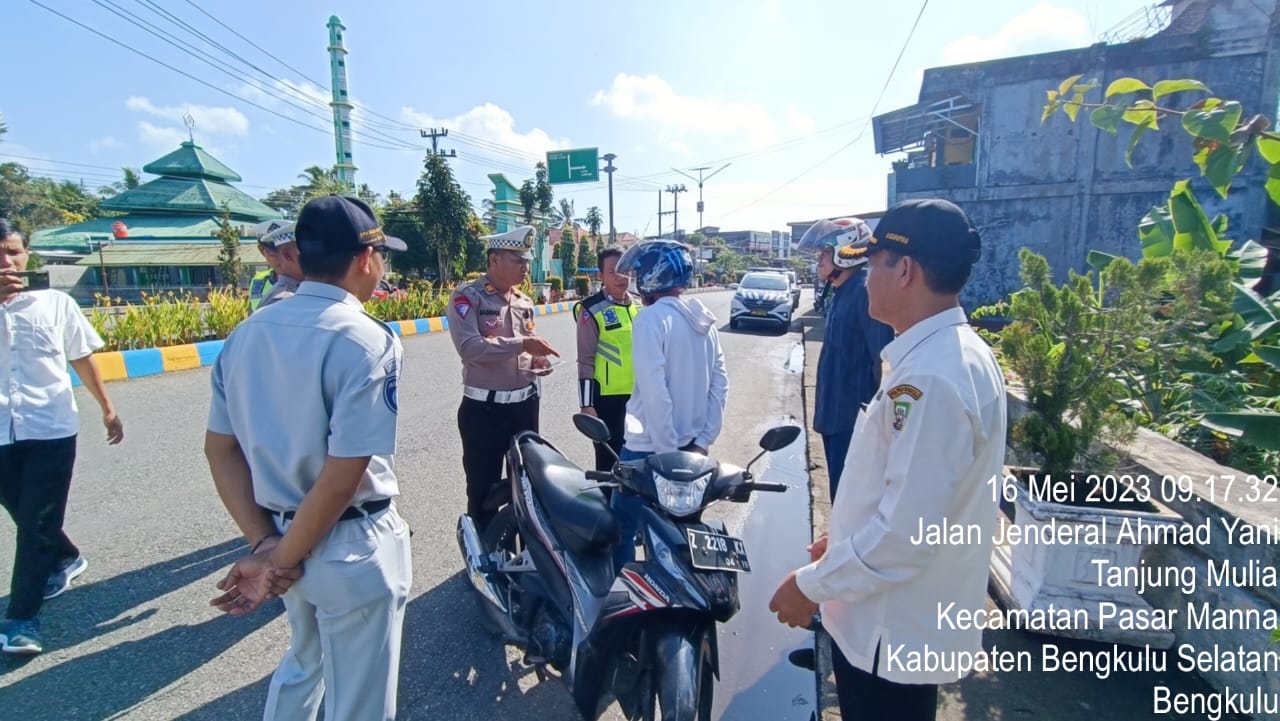 Sat Lantas Polres Bengkulu Selatan Polda Bengkulu, melaksanakan penegakan hukum dan pemeriksaan kendaraan bermotor dalam rangka mendukung program Pemutihan Pajak Ranmor, di Jalan raya Simpang tiga Rukis, Manna Bengkulu Selatan, Selasa (16/05/23).