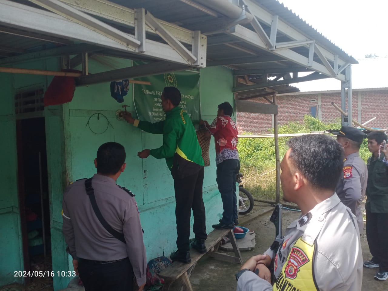 Lebong – Kapolsek Lebong Selatan Polres Lebong Polda Bengkulu AKP Kuat Santoso bersama personelnya, menghadiri sita eksekusi perkara perdata sebidang tanah berikut bangunan yang terletak di Desa Tik Jeniak Kecamatan Lebong Selatan, Kabupaten Lebong, Kamis (16/5/2024).