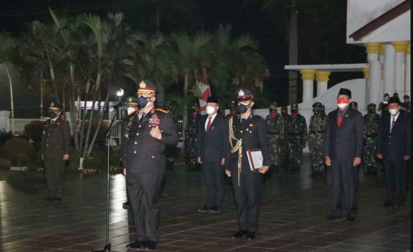 Bengkulu, Siberindo.co – Kapolda Bengkulu Irjen Pol Guntur Setyanto bertindak sebagai inspektur upacara dalam kegiatan Apel Kehormatan dan Malam Renungan Suci di Taman Makam Pahlawan Balai Buntar Kota Bengkulu dalam rangka peringatan Hari Ulang Tahun Kemerdekaan RI ke-76 pukul 00.00 WIB, pergantian hari Selasa (17/8/2021).