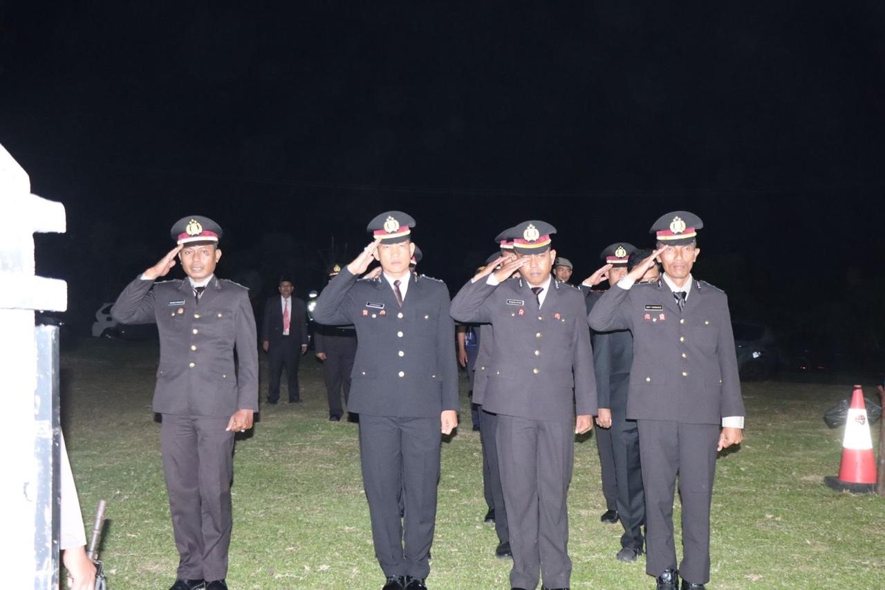 Kaur – Kapolres Kaur AKBP. Eko Budiman, S.I.K., M.I.K., M.Si., memimpin kegiatan apel kehormatan dan renungan suci yang digelar di Taman Makam Pahlawan (TMP) Padang Kempas Kabupaten Kaur, Rabu (16/08/2023),