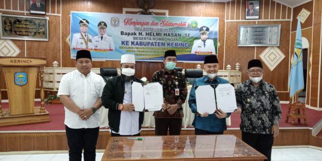 Hal ini tampak seusai perjanjian kerjasama atau Memorandum Of Understanding (MoU) antar Pemkot Bengkulu dengan Pemkab Kerinci yang ditandatangani langsung oleh Wali Kota Bengkulu Helmi Hasan bersama Bupati Kerinci Adirozal, di aula kantor Bupati Kerinci, Kamis (16/9/2021).