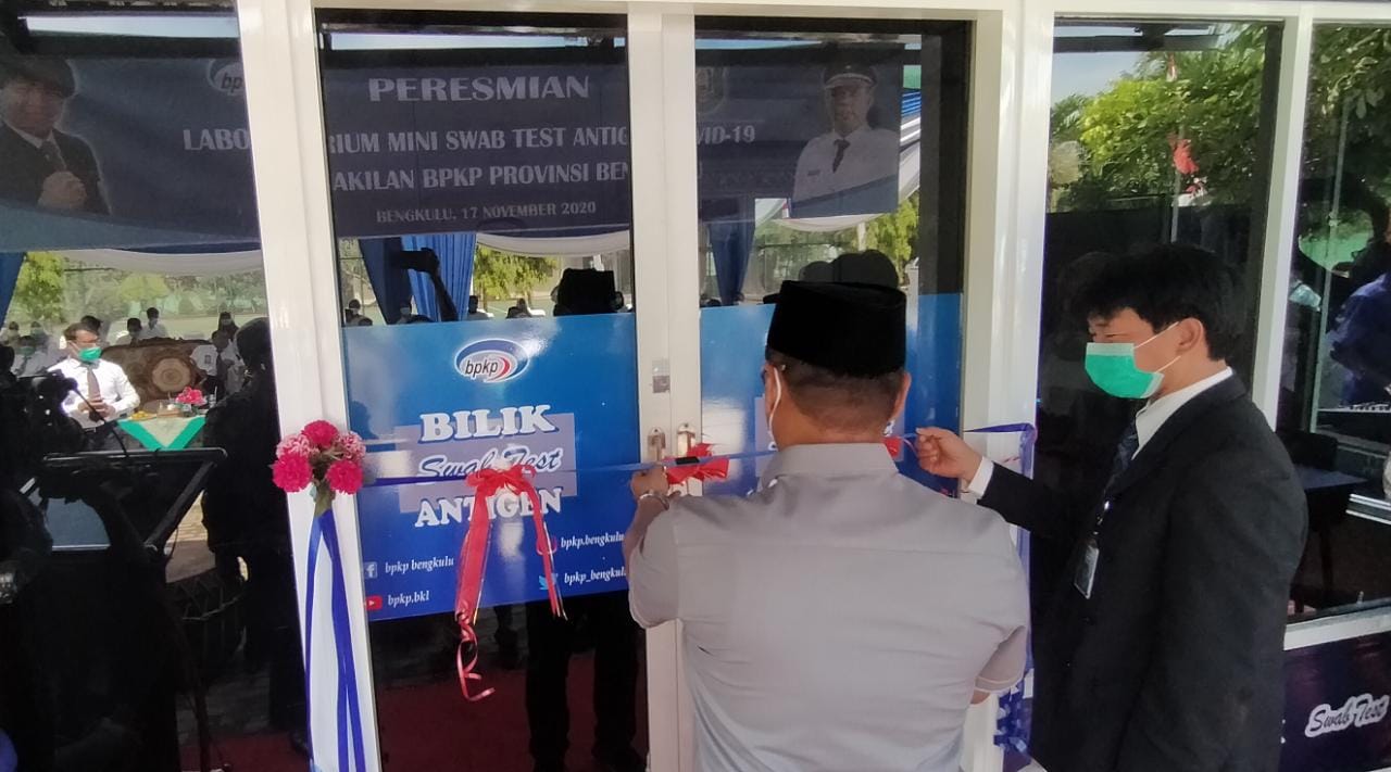 Bengkulu, Siberindo.co – Menekan penyebaran Covid-19, Badan Pengawasan Keuangan dan Pembangunan Provinsi Bengkulu (BPKP) bekerjasama dengan pihak PT Pelindo Bengkulu dan UPTD Laboratorium Kesehatan Daerah Provinsi Bengkulu meresmikan bilik tes usap/swab antigen, di halaman kantor BPKP, Selasa (17/11/2020) pagi.