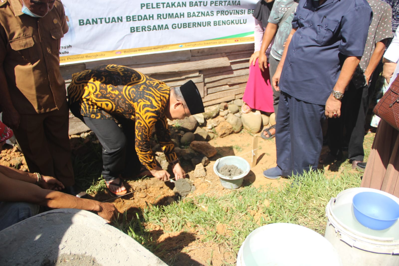 Bengkulu, Siberindo.co – Gubernur Bengkulu Rohidin Mersyah lakukan peletakan batu pertama Bantuan Bedah Rumah Baznas Provinsi Bengkulu, di Kediaman Ibu Elmiati, Desa Taba Jambu, Kecamatan Pondok Kubang, Kabupaten Bengkulu Tengah, Selasa (16/11/2021).