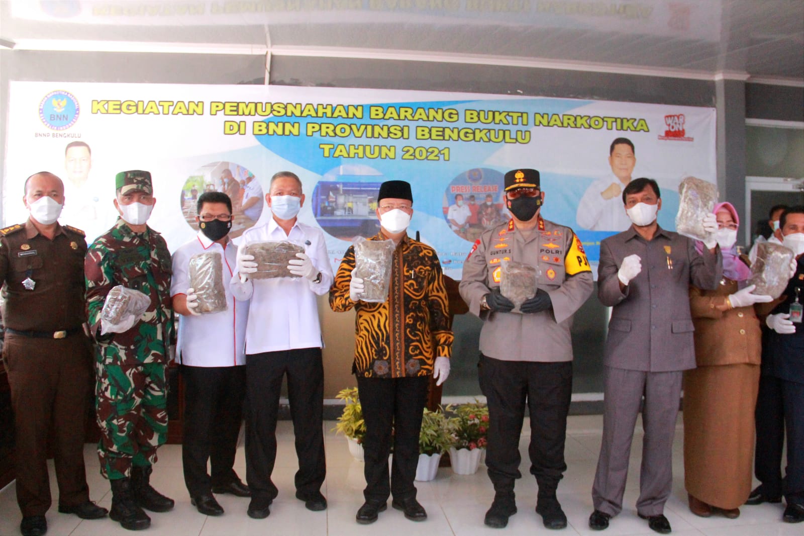 BNNP Bengkulu memusnahkan Narkotika Golongan I jenis Ganja seberat 143 Kilogram, yang dilakukan bersama Gubernur Bengkulu Rohidin Mersyah, Forkopimda Provinsi Bengkulu serta penggiat anti Narkoba.