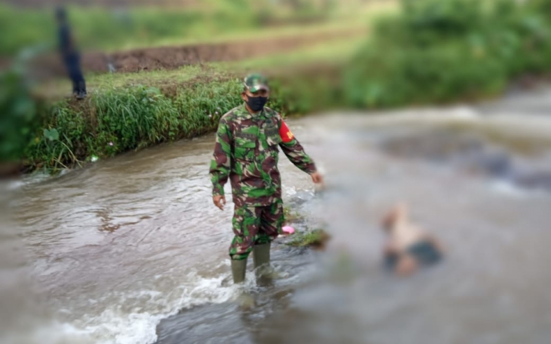 Mendapat laporan tersebut Serda Dahroni bersama warga mendatangi lokasi penemuan mayat tersebut.