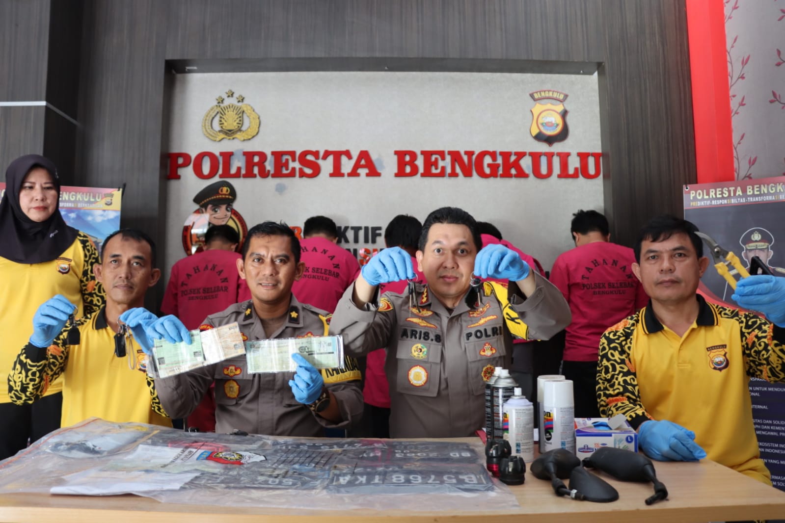 Saat press release di Mapolresta Bengkulu Jumat (17/2/2023), Kapolresta didampingi Kabag Ops Kompol Jufri dan Kapolsek Selebar Kompol Hasanul Bakri serta Kasi Humas Iptu Nurlaila menerangkan, kelima tersangka ditangkap atas kasus Curanmor yang menimpa korban warga Jalan Raden Fatah Kelurahan Sumur Dewa Kecamatan Selebar Kota Bengkulu, pada Senin (23/1/2023) lalu.