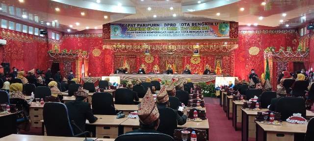 BENGKULU – Dewan Perwakilan Rakyat Daerah (DPRD) Kota Bengkulu menggelar rapat paripurna istimewa dalam rangka memperingati Hari Jadi Kota Bengkulu ke-302 dengan tema “Kita Wujudkan Bengkulu Tangguh, Religius, Sehat, Bebas Covid 19” bertempat di ruang rapat Ratu Agung DPRD Kota Bengkulu, Rabu (17/3/2921).