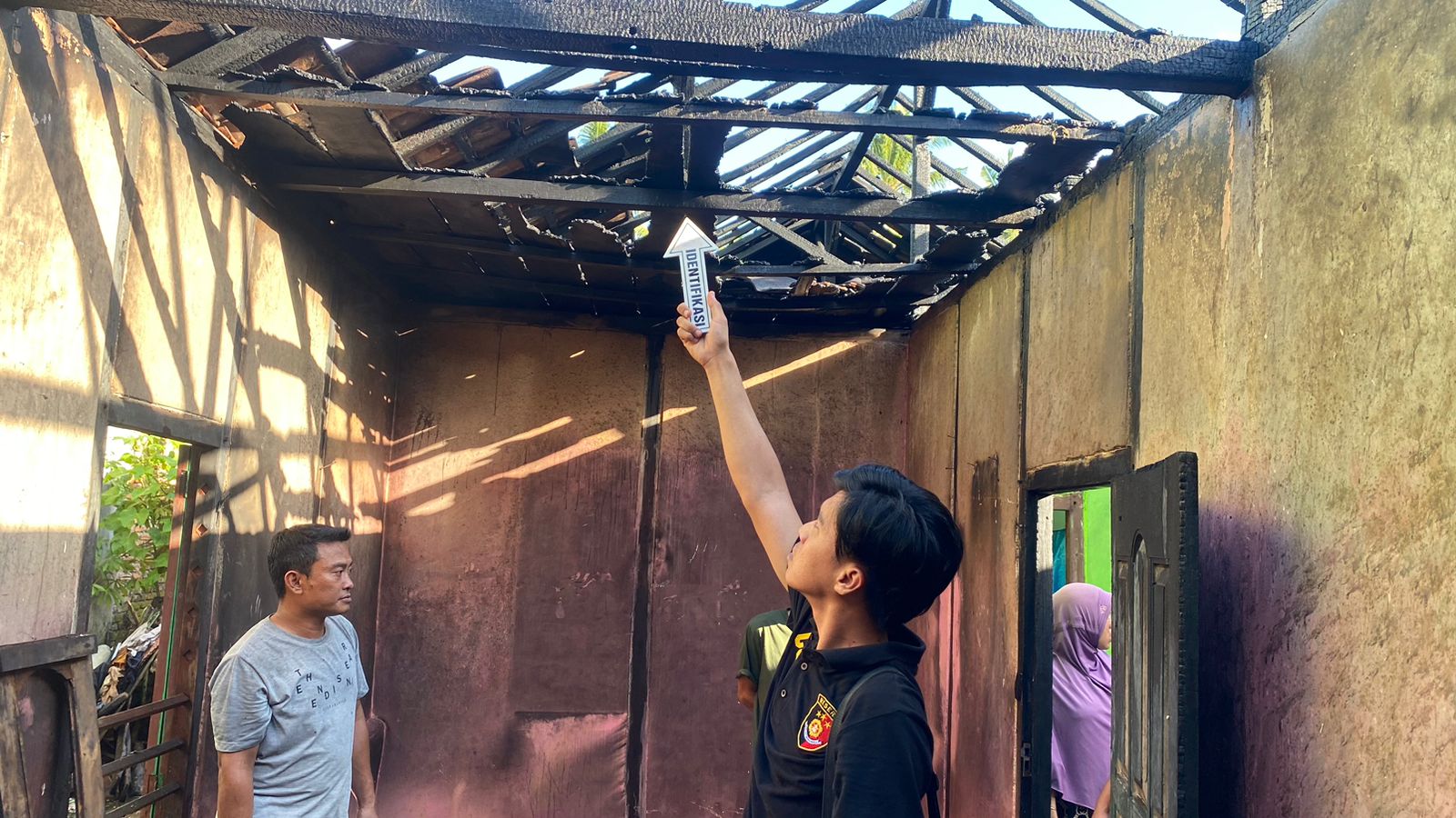 Rumah korban (sdr Saipul Baharun) terbakar pada bagian atap depan sampai dengan bagian atap tengah rumah.