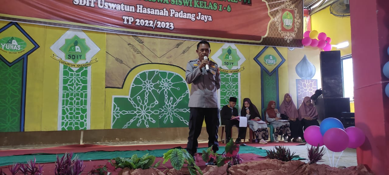 Bengkulu Utara – Wakapolsek Padang Jaya Polres Bengkulu Utar Polda Bengkulu Ipda Sunarto menghadiri acara pelepasan siswa/siswi kelas VI dan wisuda Tahfiz SD IT Uswatun Hasanah, Selasa (16/05/2023).