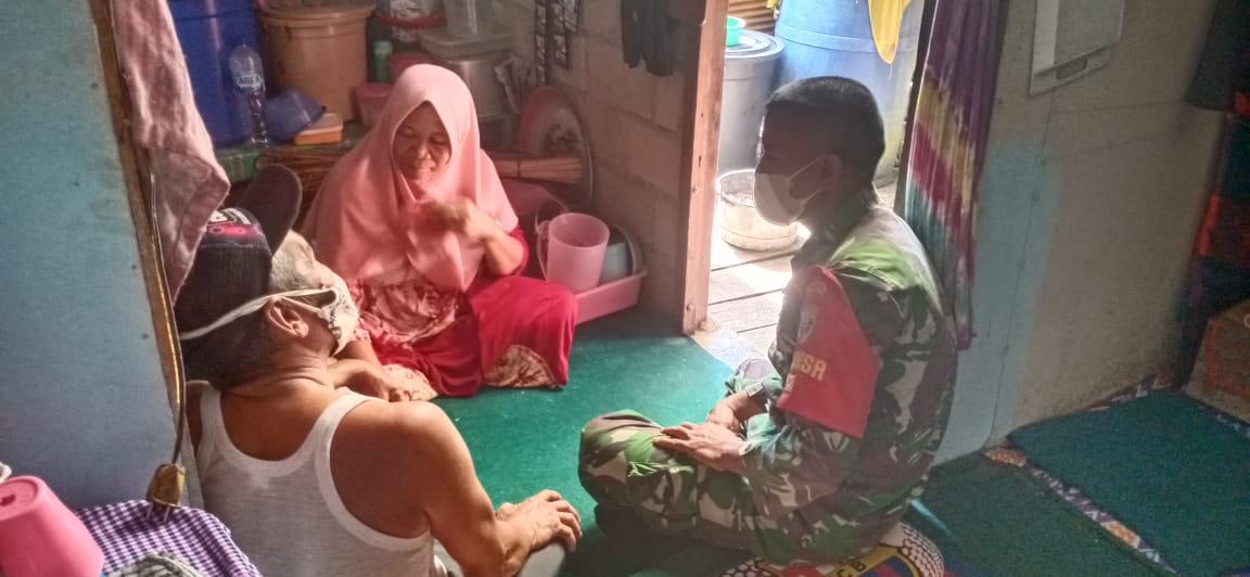 Kotawaringin Barat – Guna meringankan beban ekonomi pada warga di desa binaannya yang terdampak pedemi virus Corona atau Covid-19 menyebabkan banyak warga yang kehilangan penghasilan, Babinsa Kumai Hulu Sertu Aswandi, membagikan sembako pada warga binaannya Bpk. Nasfirudin (64 Th) yang sudah 4 bulan tida bisa bekerja pasca operasi kangker prostat yang di deritanya.