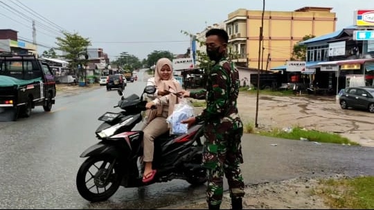 “membagikan tersebut di tujukan kepada masyarakat yang berada di sekitar Pasar Impress Sintang, agar selalu ingat dan taat terhadap protokol kesehatan”, ujar Danyon