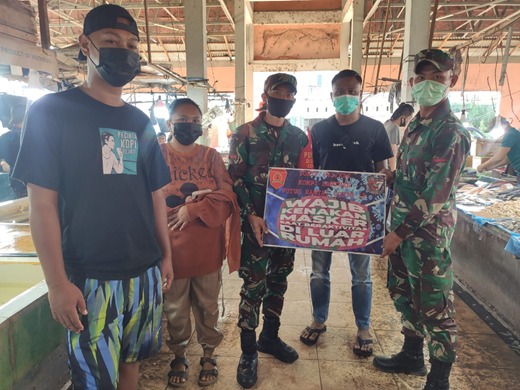 Sintang, Kalbar – Untuk mencegah penyebaran Covid – 19, Batalyon Infanteri 642/Kapuas melaksanakan pembagikan masker di Pasar Sui Durian, Sintang, Kalbar.
