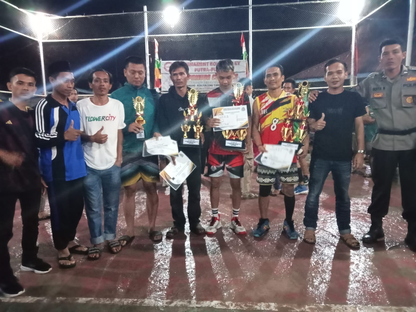 “Dalam acara pembukaan kita hadir dan selama pelaksanaan turnamen kita tetap pantau keamanannya, dan sekarang juga dalam babak final kita tetap hadir dan memonitoring, karena kita ingin turnamen bola volly ini berjalan aman lancar dan menjadi ajang untuk berprestasi,” demikian diterangkan kapolsek Lais Iptu Sukamto.