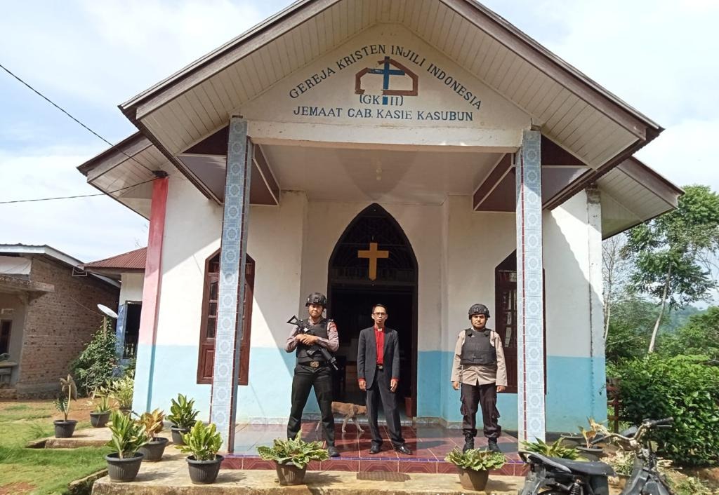 Rejang Lebong – Polsek Padang Ulak Tanding (PUT) Polres Rejang Lebong Polda Bengkulu melaksanakan kegiatan pengamanan ibadah Gereja GKII di desa Kasie kasubun kecamatan Padang Ulak Tanding Kabupaten Rejang Lebong, Minggu (18/06/2023).