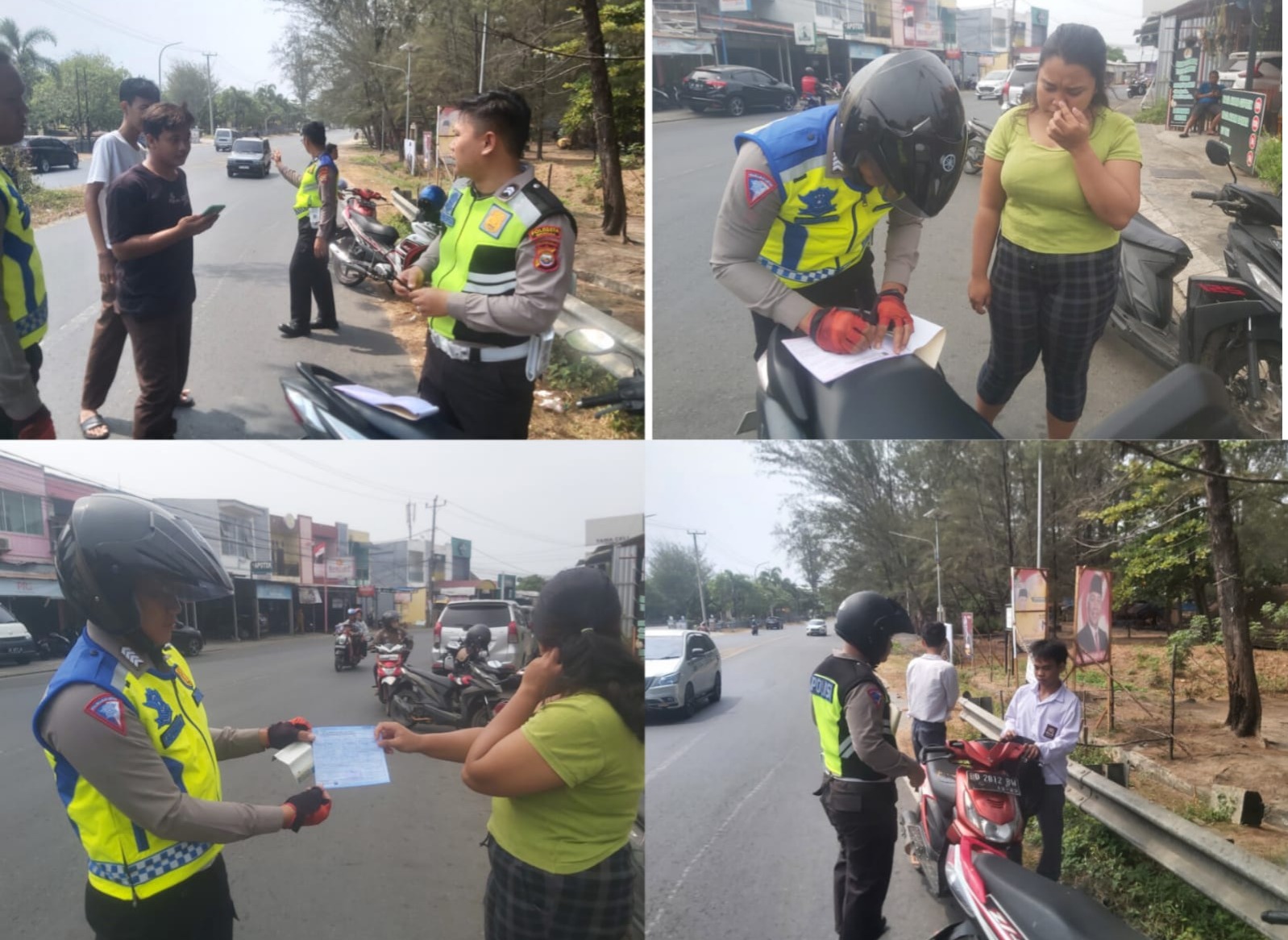 Selain melakukan penindakan kepada pengendara yang melanggar, personel juga menyampaikan imbauan terhadap pengendara yang tidak menggunakan helm.