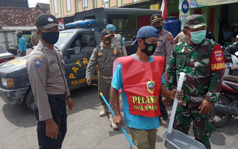“Hari ini kita mendapatkan sebanyak 20 orang pelanggar protokol kesehatan yang langsung kita kasih sanksi sosial berupa membersihkan/menyapu dan memungut sampah yang ada di pasar dan sekitarnya selama 15 menit,” ucap Kapten Indro.