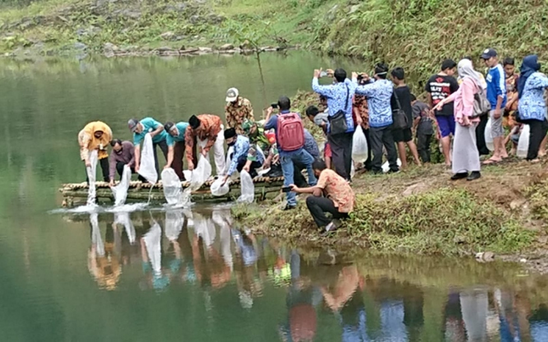“Dengan susah payah kita membangun embung ini maka dari itu kita pelihara bersama dengan baik tidak boleh sedikitpun ada yang merusaknya. Jangan lupa ikan yang kita tabur hari ini harus terus kita pelihara agar nanti bisa bermanfaat bagi kita semua”, tutup Eko.