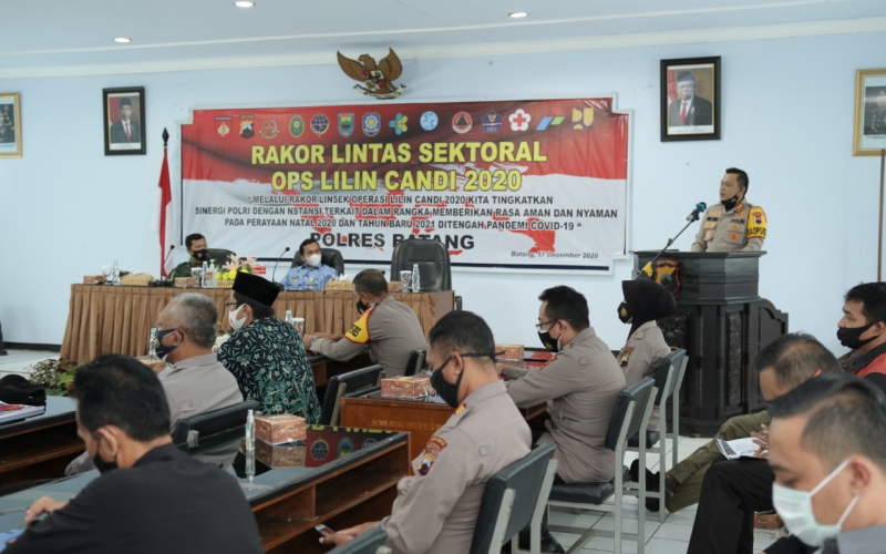 Kesiapan pengamanan menjelang natal 2020 dan tahun baru 2021, jajaran Kepolisian Resor (Polres ) Batang menggelar rapat koordinasi lintas sektoral (Rakor Linsek) Ops Lilin Candi 2020 bersama Forkopimda di Rupatama Mapolres Batang, Kamis (17/12/2020).