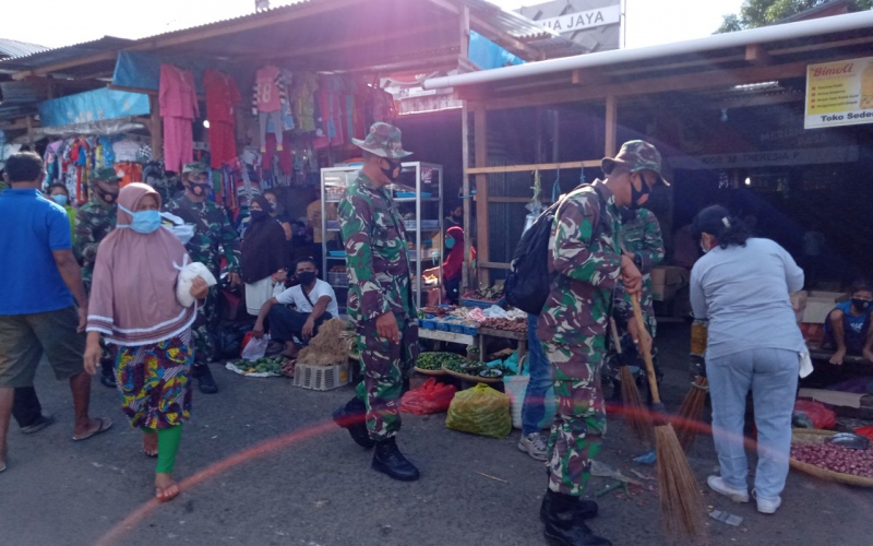 Dalam rangka memperingati Hari Infanteri ke-72 tahun 2020 Kodim 1310/Bitung menggelar kegiatan Karya Bakti pembersihan sampah di Pasar Winenet yang terletak di Kelurahan Winenet Dua, Kec. Aertembaga, Kamis (17/12/2020).