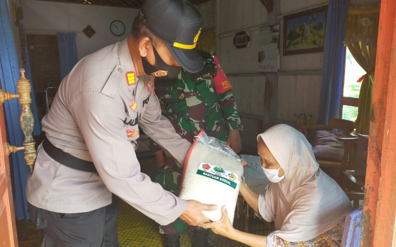 Dijelaskan Kapolsek AKP Akhmad Almunasifi beras yang dibagikan adalah bantuan dari Mabes Polri. Pembagian beras menyasar untuk warga kurang mampu terdampak secara ekonomi pandemi COVID-19.