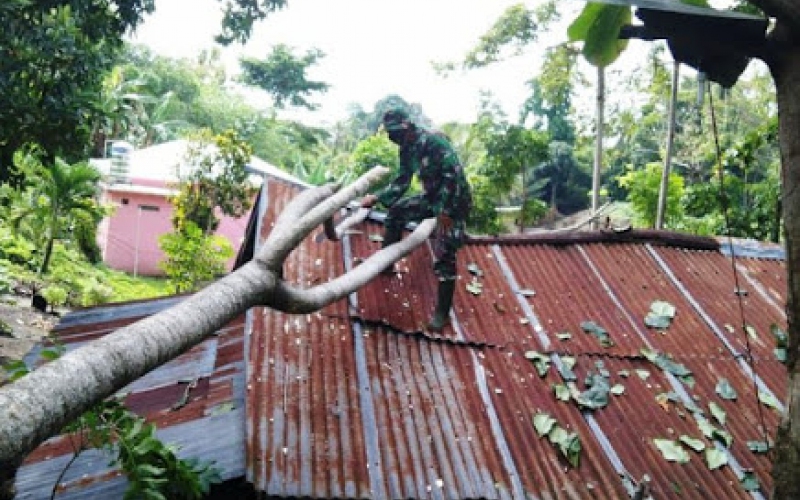 “Dalam kejadian tersebut tidak ada korban jiwa, hanya saja kondisi rumah mengalami rusak pada sisi atap, dan kerugian diperkirakan sekitar Rp. 2 juta,” kata Serda Endi.