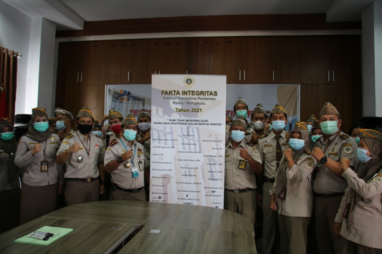 Bengkulu, Siberindo.co – Aparatur Sipil Negara (ASN) Karantina Pertanian Bengkulu berkomitmen bersama mengoptimalkan pelayanan publik dan gerakan ekspor sebagai program utama dituangkan dalam penandatanganan Pakta Integritas.