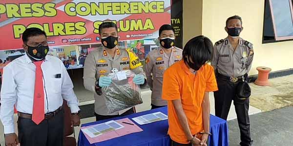 Bengkulu, Siberindo.co – FB, pemuda warga Desa Padang Genting Kecamatan Seluma Selatan Kabupaten Seluma, diringkus petugas Reserse Narkoba Polres Seluma Polda Bengkulu pada Rabu (13/1/2021). FB yang juga berstatus mahasiswa di salah satu perguruan tinggi swasta di Kota Bengkulu ini kini mendekam di sel jeruji besi Polres Seluma atas dugaan kepemilikan ganja seberat 560 gram.